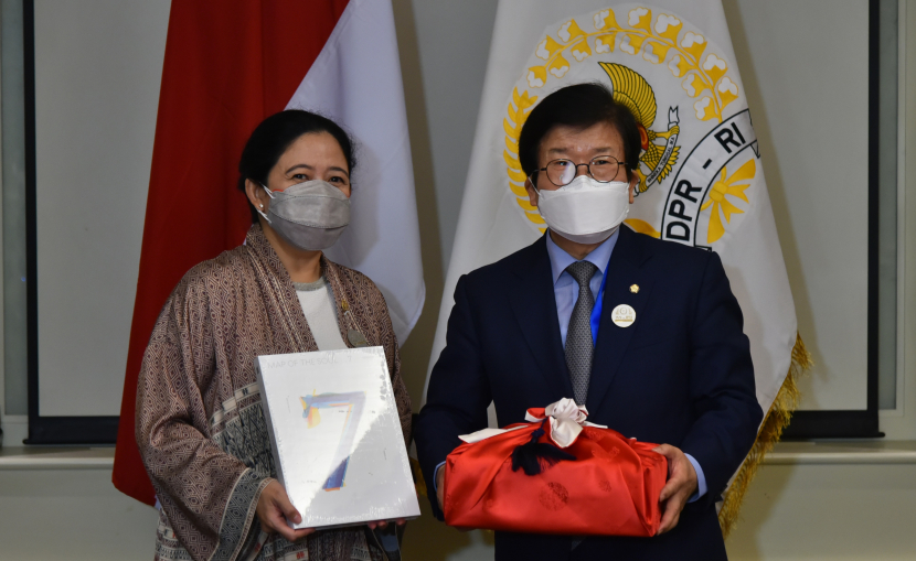 Dalam pertemuannya dengan Park, Puan menerima album 'Map of The Soul: 7' karya boyband asal Korsel BTS dari Ketua DPR Park. "Saya dapat ini nih, BTS, CD (compact disc) BTS di dalamnya baru tahu kalau kaya gini. Nanti saya dengerin," kata Puan.