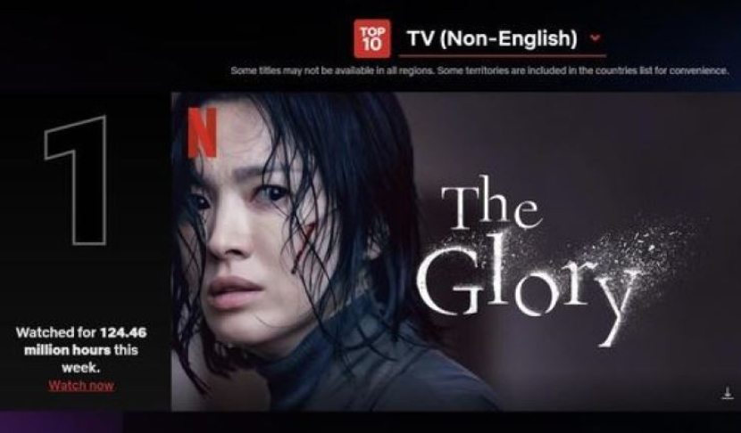 Jam menonton The Glory jauh melampaui "You: Season 4", yang menempati posisi pertama di chart acara TV Inggris Netflix dengan 75,81 juta jam menonton selama periode yang sama.
